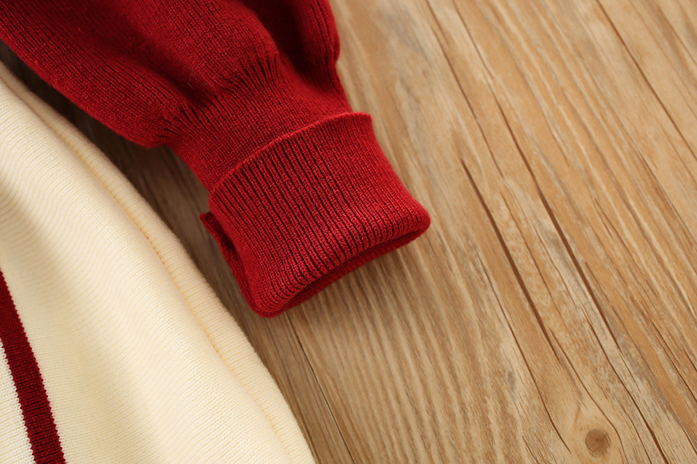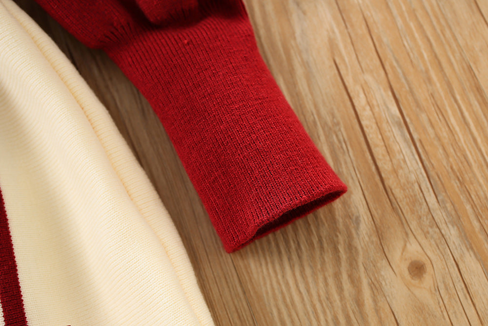 Imported ❄️ Winter Girls’ Knitted Bow Dress – Korean Style with Puff Sleeves