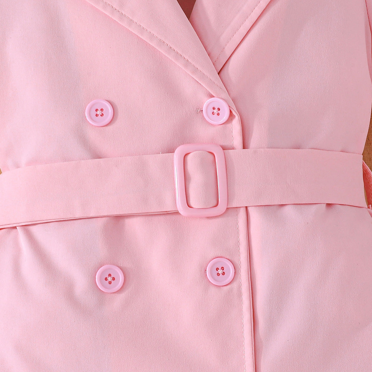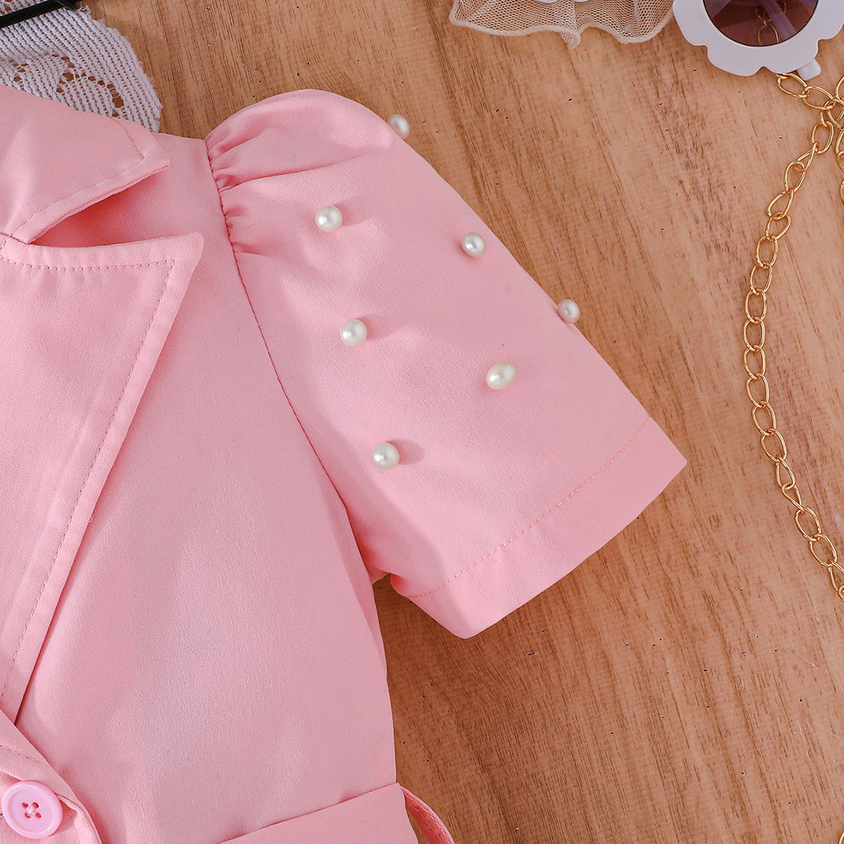 Imported 🌼 Girls’ Solid Color Short-Sleeve Casual Dress + Belt – Summer Two-Piece Set