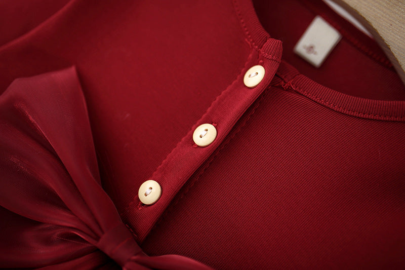 Imported 🎀 Spring/Autumn Girls’ Princess Dress – Long Sleeve with Large Bow